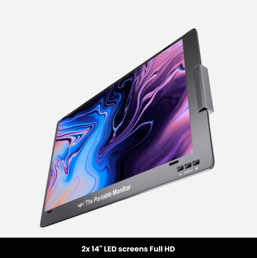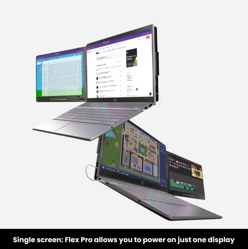 Add two extra 14" monitors to your laptop with a single cable (USB-C or USB 3.0). The Flex Pro 14" iscompatible with all 11" to 18" laptops and works seamlessly with Mac (including M1, M2, and M3 - Pro & Max included), Windows, Ubuntu and Android devices. The Flex Pro 14" features dual Full HD IPS screens with HDR support and eye-caretechnology to protect your eyes during extended use. Crafted entirely from premium aluminum, the Flex Pro 14" is built to withstand the test of time.